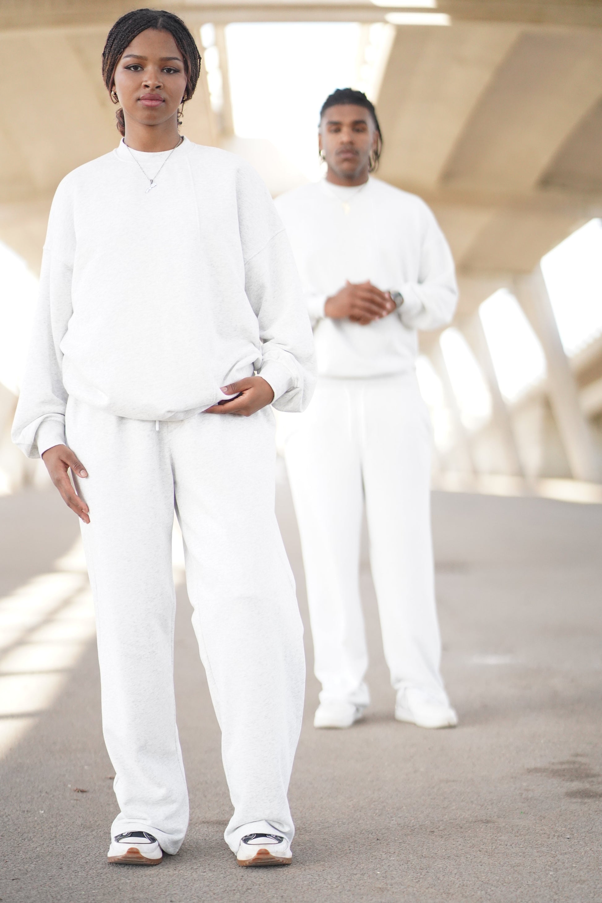 El longsleeve, con un corte moderno y un tacto suave, se combina con el jogger ajustado para un look street minimalista y a la moda.